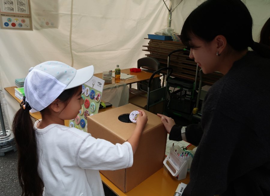 「毎年、参加しています!」「去年はこのバッヂをもらったの。」とリュックに付けたバッヂを見せてくださる方も。他にも、「美術館があるので、清澄白河に越してきましたー。」「現美には展覧会をよく見に行っています。」などと、うれしい声をたくさんいただきました。
