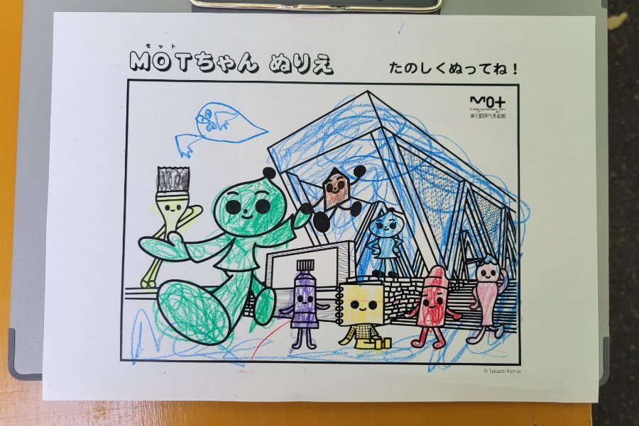 「MOTおもしろプログラム」では「まちがいさがし」を行いました。初級と上級の2種類あり、それぞれ間違いは20個。リピーターも多いため、間違いの箇所を昨年のものから一部更新しました。この中には、MOTちゃんやエンピツくんなど、当館オリジナルのキャラクターも登場しています。