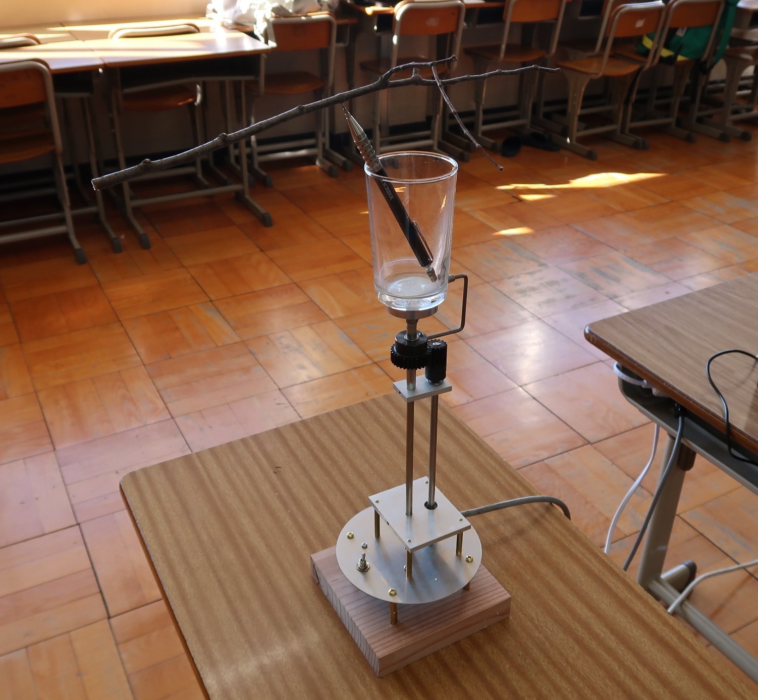 最後の鑑賞作品は、ヤジロベエの原理を活かした《やじろぐ枝》。コップに立てられたペンの先で枝がバランスをとりながらゆらゆら動きます。