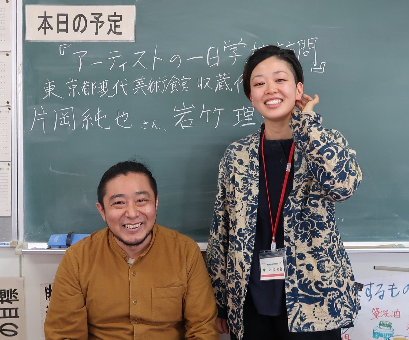 当館の所蔵作家が都内の学校を訪問して授業を行う「アーティストの1日学校訪問」。令和5年度は二人組のアートユニット、片岡純也さんと岩竹理恵さんとともに、小学校4校、中学校1校、高校1校の計6校を訪問しました。
