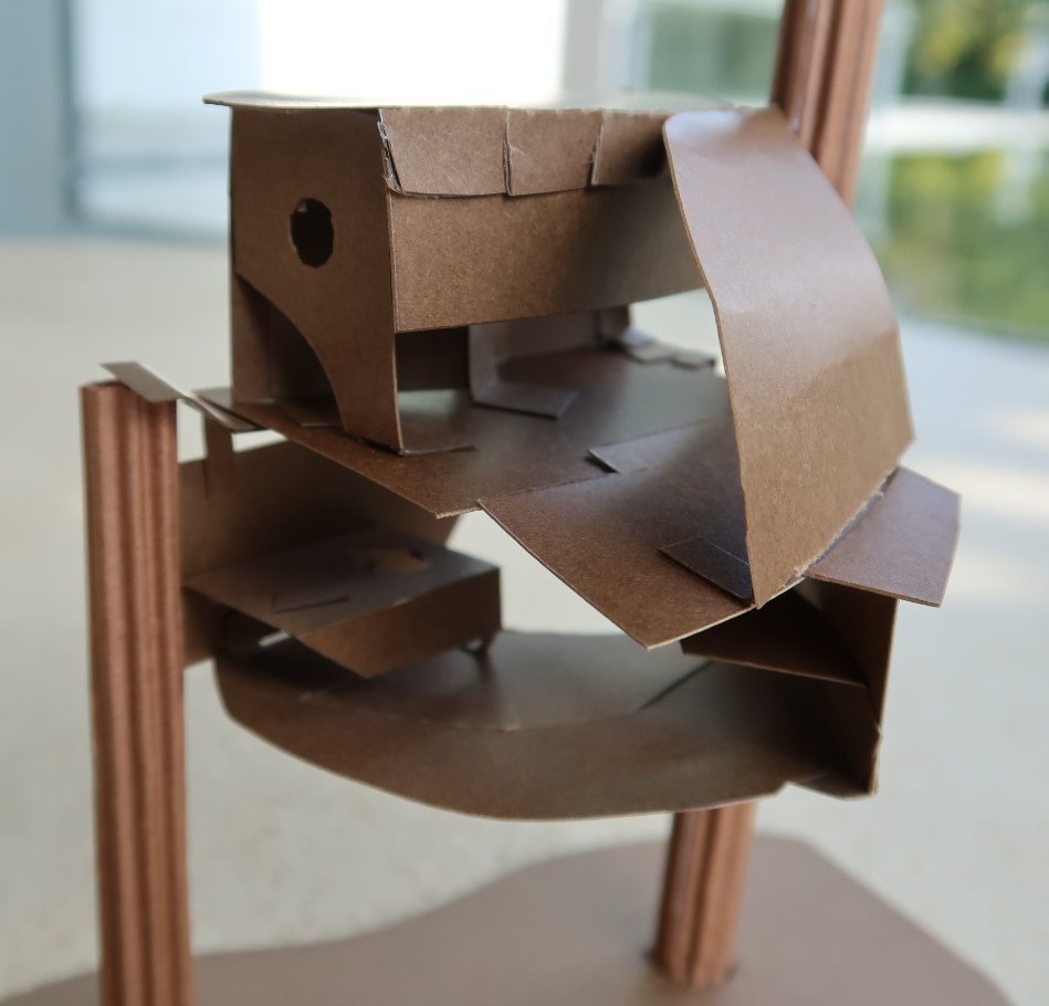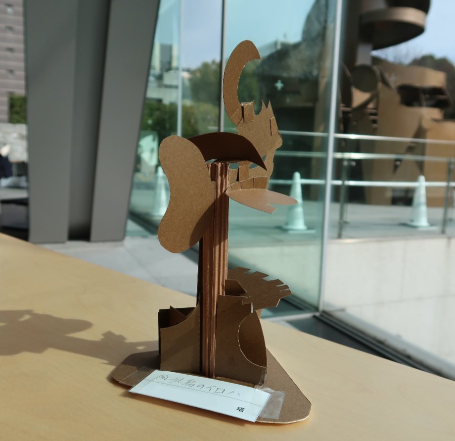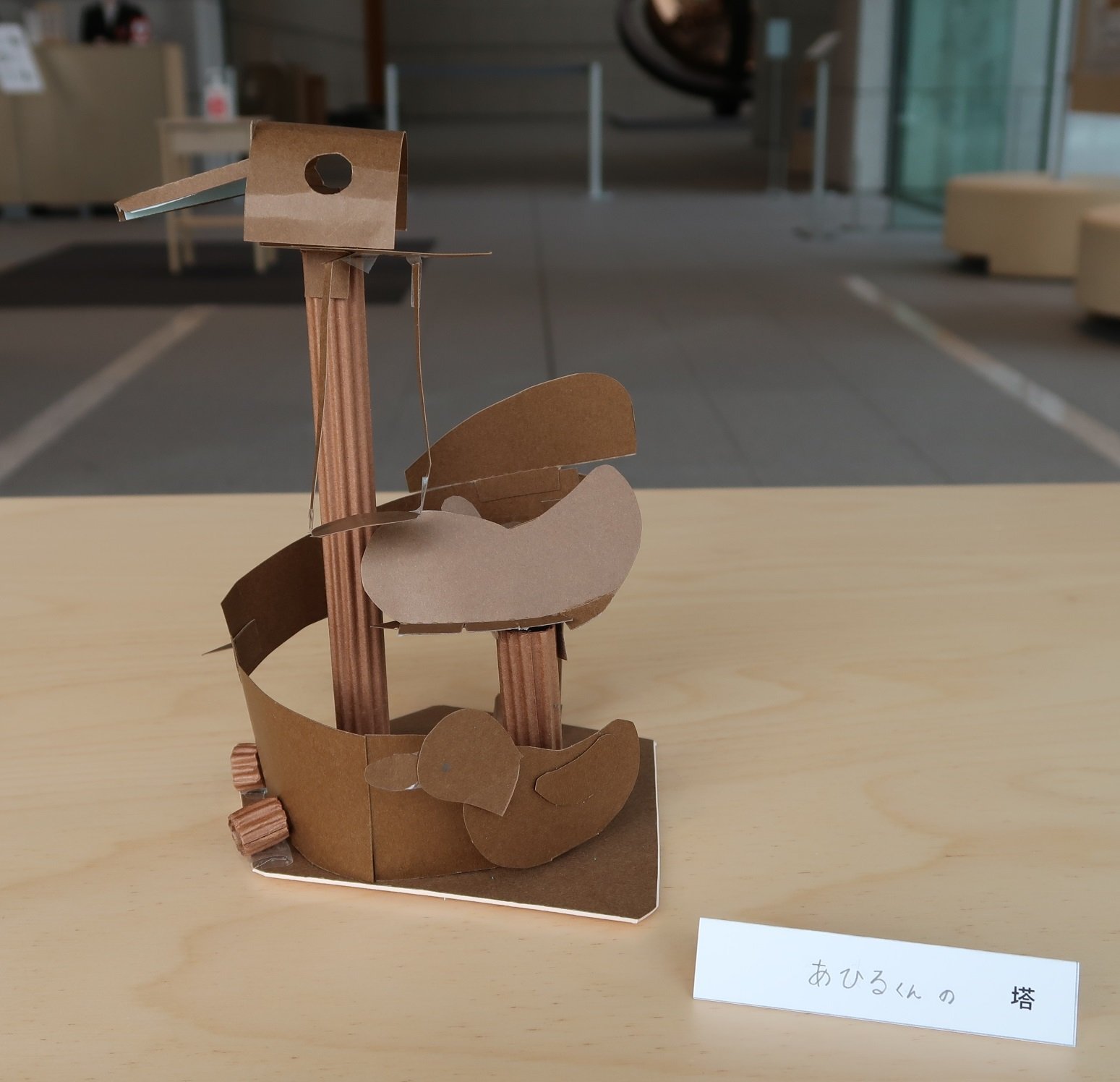 普段からペーパークラフトをやっていることもあり、本プログラムに興味を惹かれて参加されたそうです。主役の「風見鳥」のための塔なので、階段はあえて作らず、外からは塔を眺めることしかできない造りだそうです。風を受けて今にも回り出しそうです。