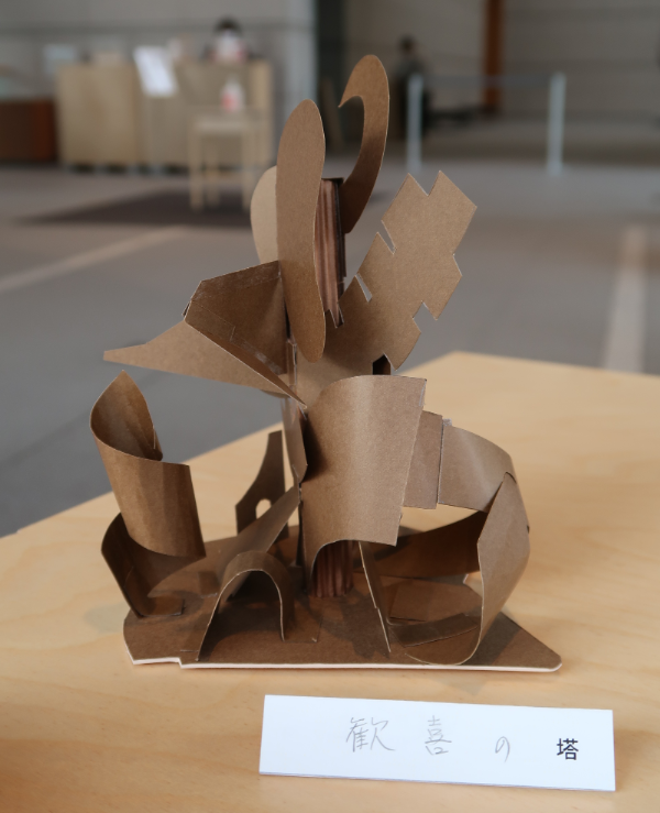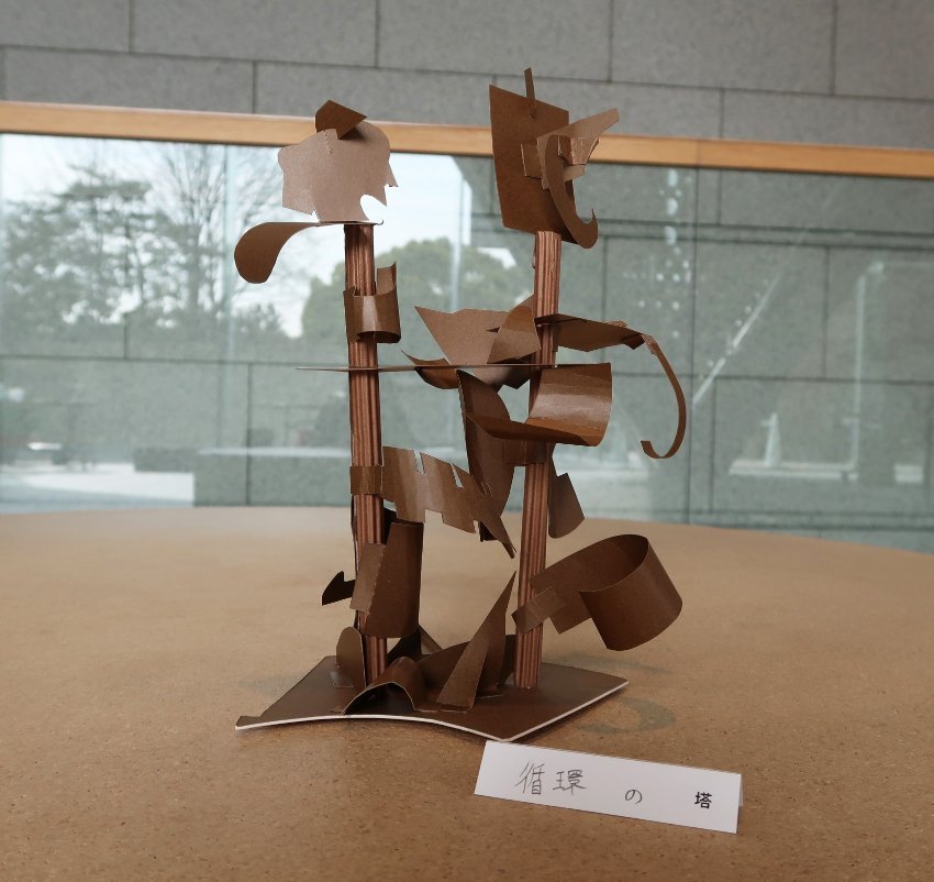 最近コンサートでベートーヴェンの交響曲第9番『歓喜の歌』の合唱に参加してきたことを受けて、《歓喜の塔》を制作したそうです。リズミカルに鉛筆で紙にカーブをつけていて、『歓喜の歌』の旋律が今にも聞こえてきそうです!