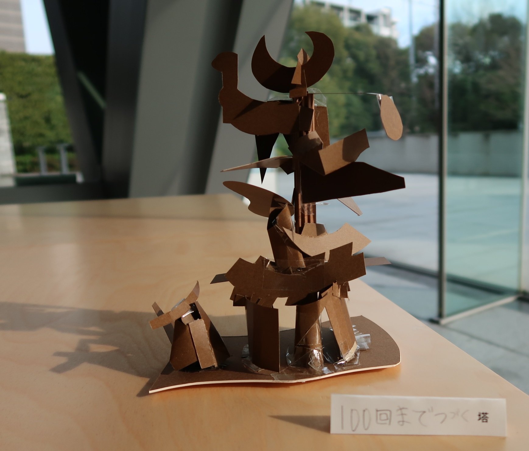 このように、参加者それぞれの着眼点でパーツの組み合わせに工夫を凝らし、バラエティー豊かな塔が完成しました。中には、塔の中に自分自身や身近に起こった出来事を投影した人もいました。他にも、塔をまわりから眺めるだけではなく、実際に登って、塔の内部や構造を間近に見ることで、気づいたことや感じたことを塔づくりに活かしている人もいました。