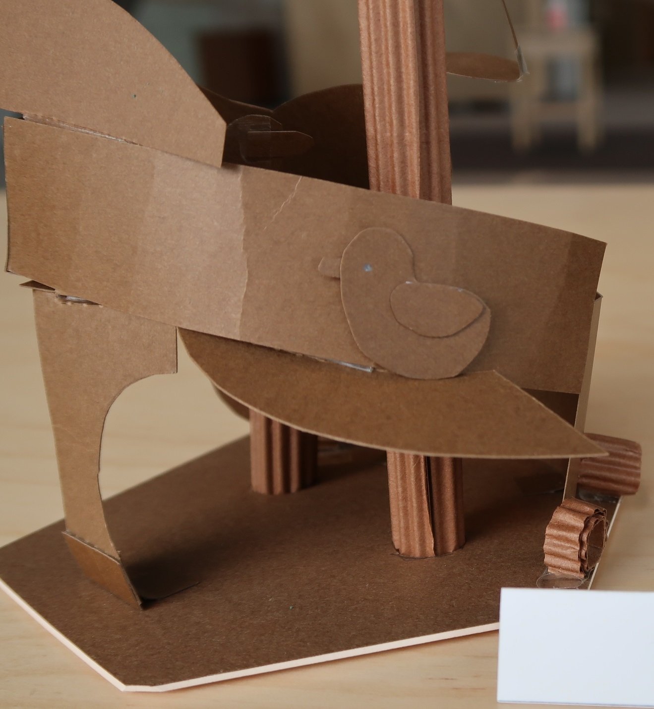 よく見ると、小さいあひるが塔の中にいたり、裏側にもこっそり隠れていたり!ブランコもかかっていて楽しげな塔が出来上がりました。