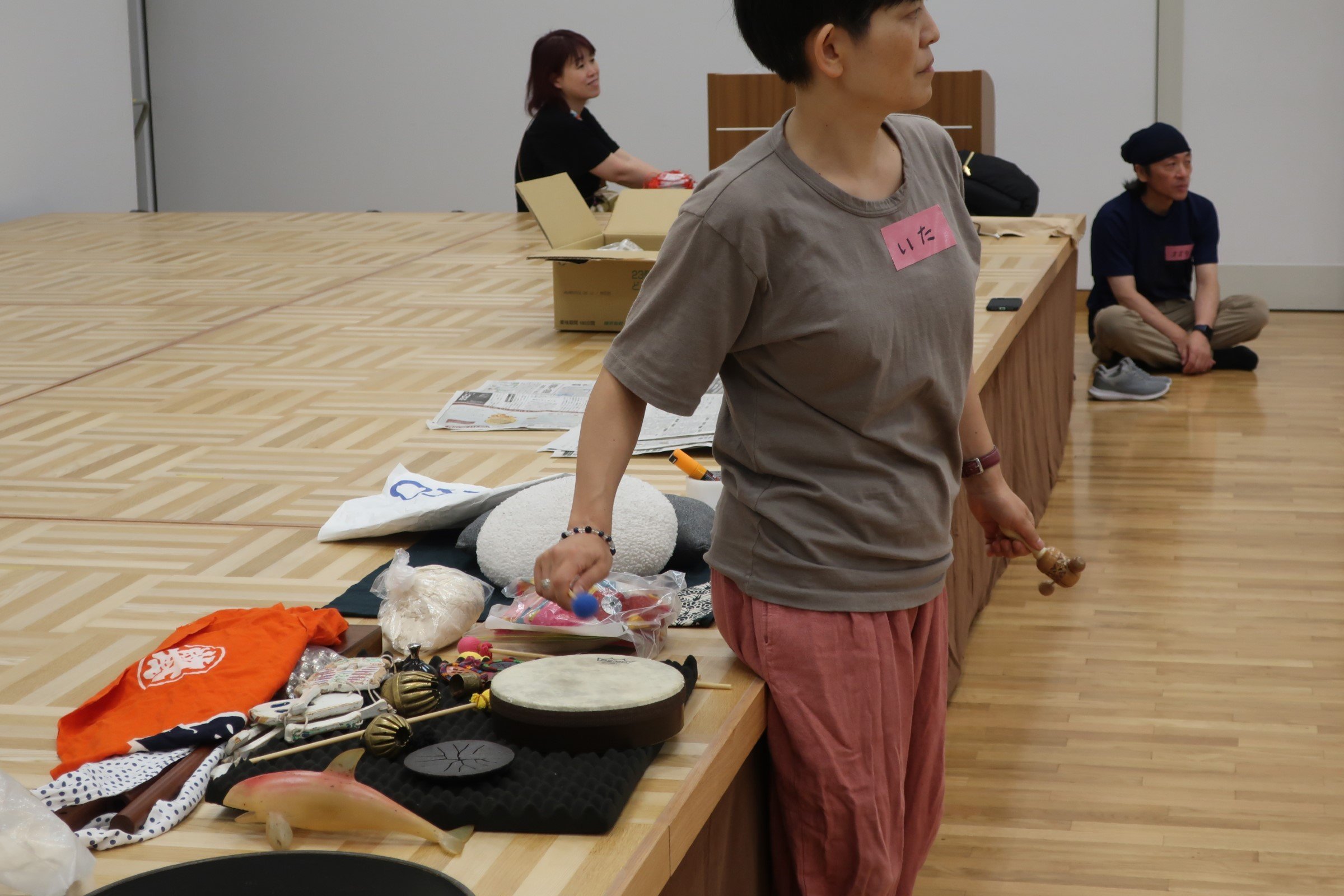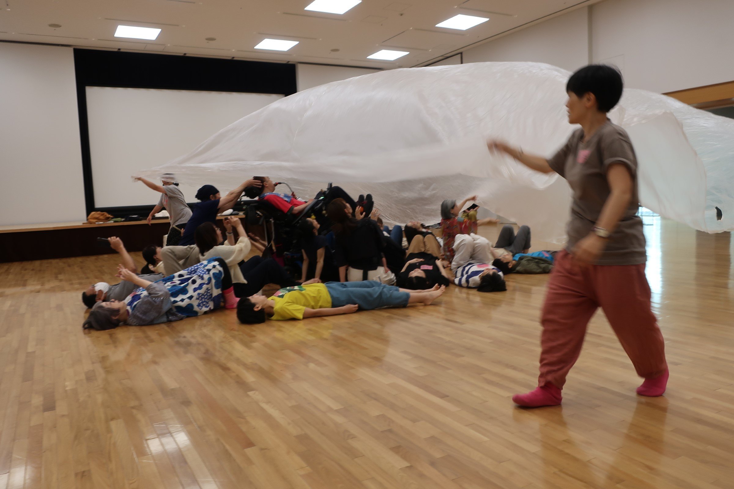 身体から力を抜くことから始まった後半のワークは、いずれも身近な“もの”を取り入れていること、そして、身体を介したコミュニケーションがポイントでした。