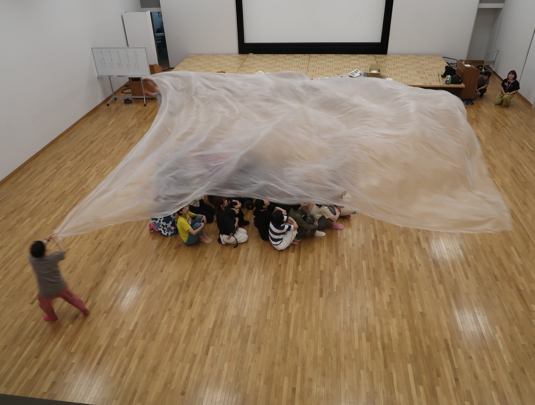 薄いポリ幕が運んでくる風に包まれるような体験に、参加者からは大きな歓声が上がっていました。(A.T)