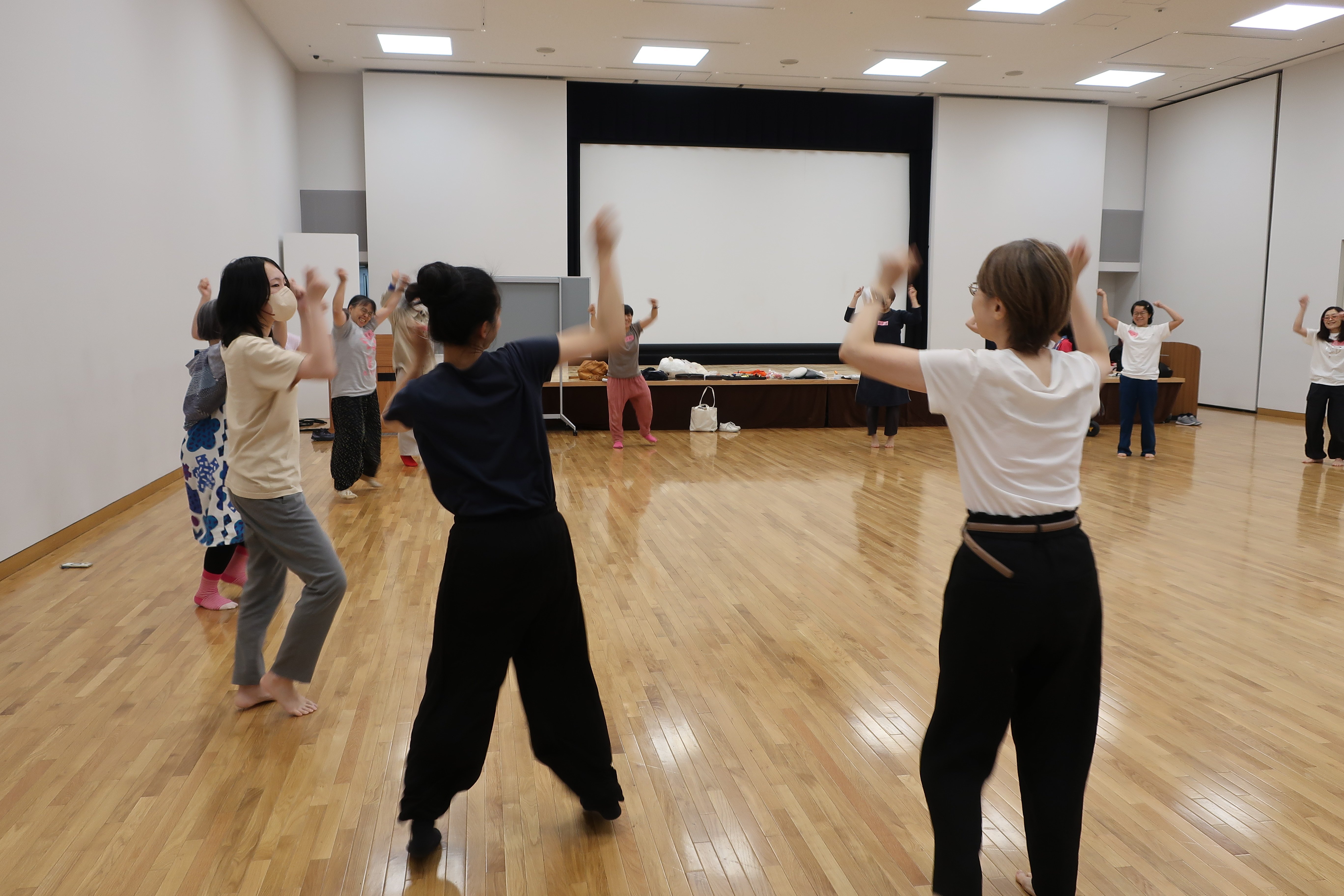 新井さんのワークでは、ちょっとした“もの”を取り入れ、それをきっかけに多様な感覚を意識して身体を動かします。音を鳴らすための身体の使い方も、鈴の表現に大きく影響します。鈴がきっかけとなり、身体の豊かな表現へとつながっていることが伝わってくるものでした。