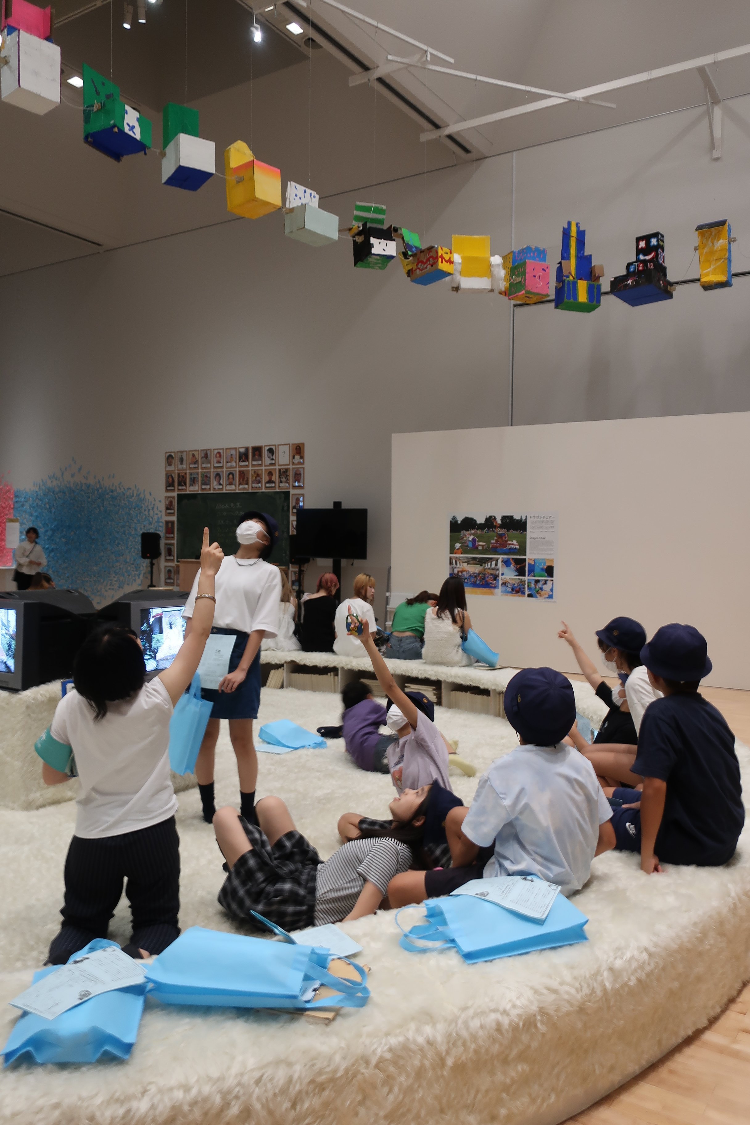 現在開催中の「開発好明 ART IS LIVE ―ひとり民主主義へようこそ」展で展示されている《ドラゴンチェアー》の制作に協力いただいた渋谷区立千駄谷小学校の6年生50人が2024年9月13日に来館しました。