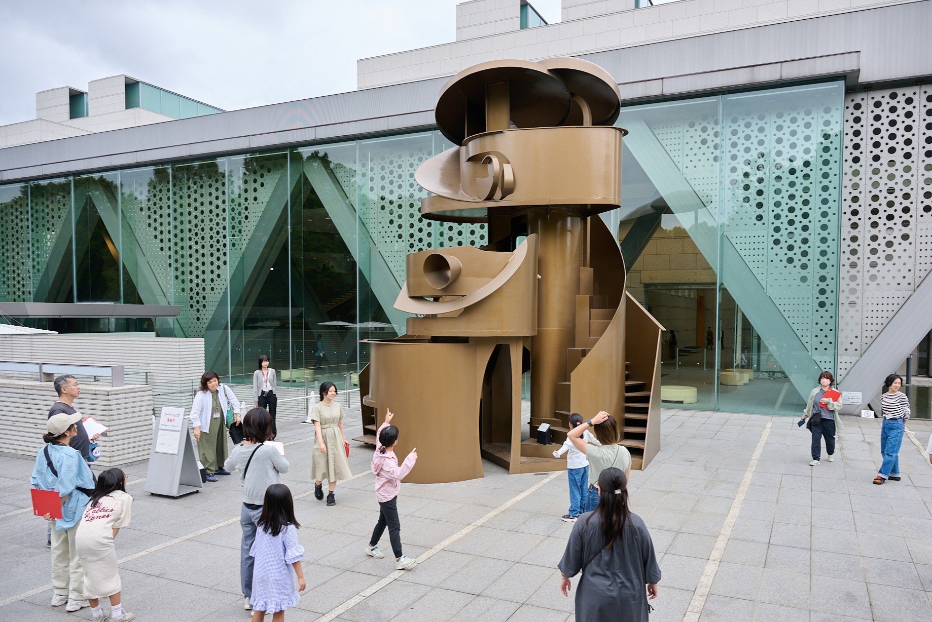 まずは、美術館の屋外彫刻作品も展示されている公園口広場で感覚をひらく準備です。その場所にある彫刻作品の鑑賞を通して、観察すること、想像力を使うことを体感します。