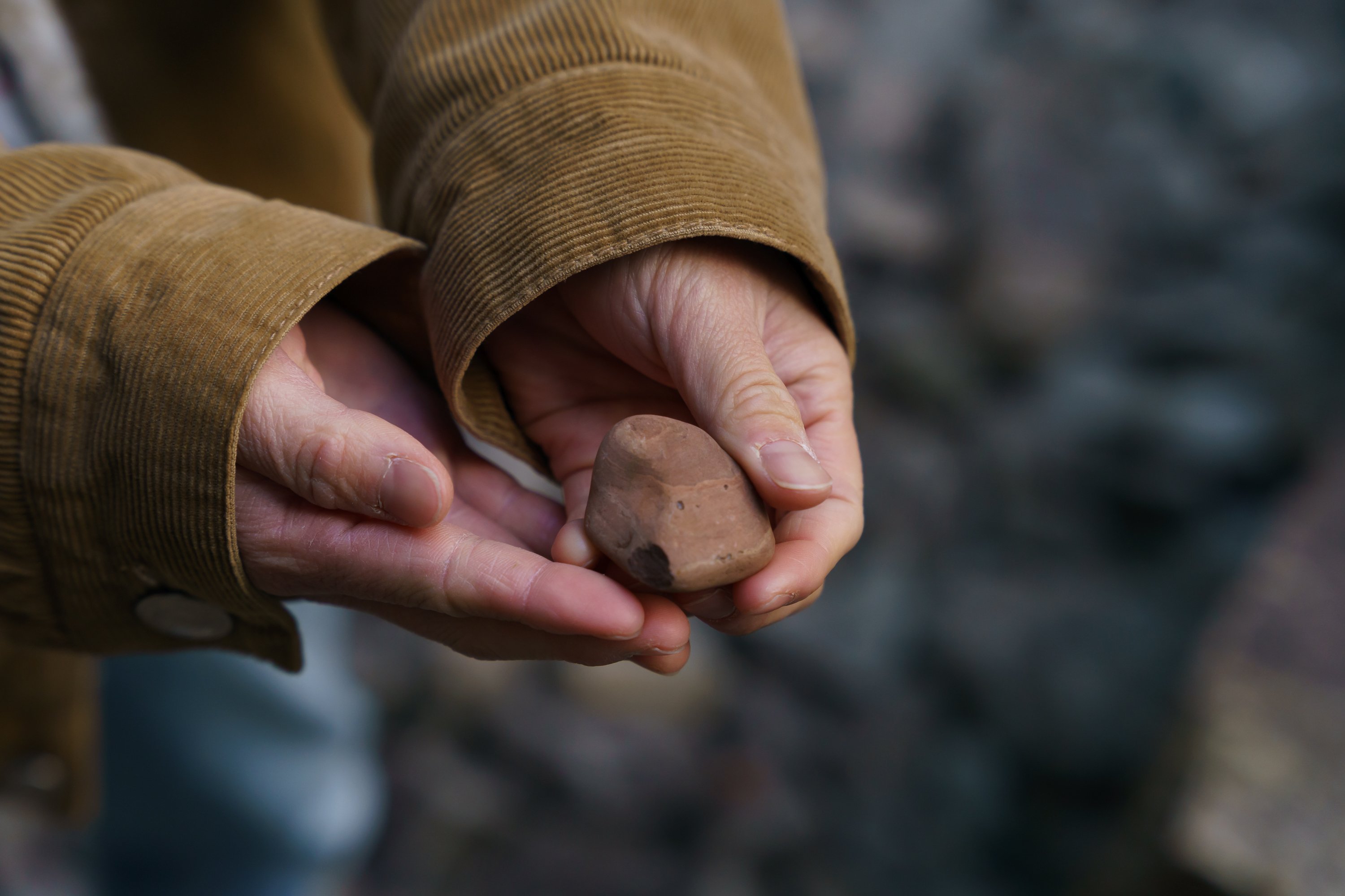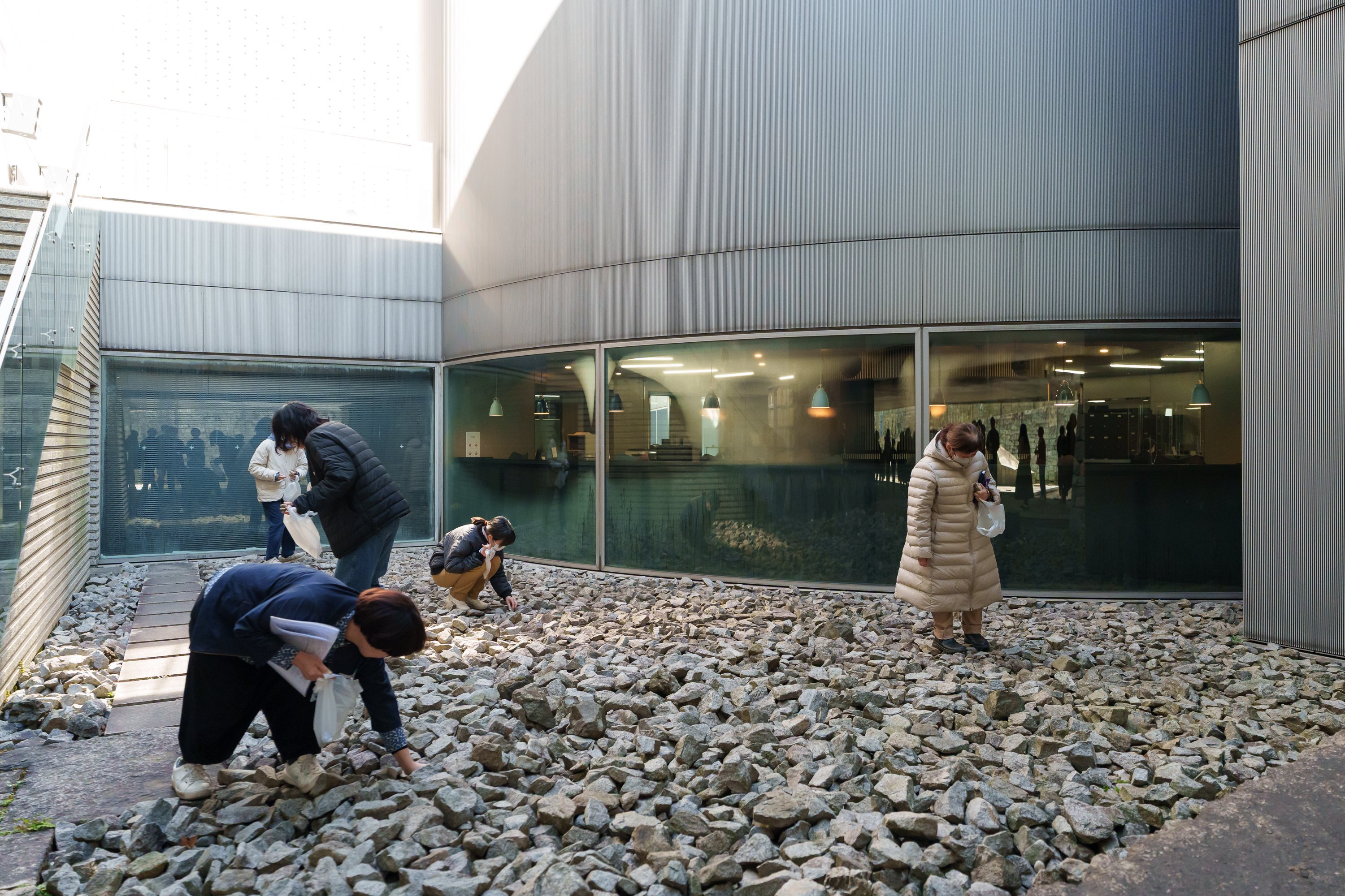 一人2個まで気になる石を拾います。美術館の色は”拝借”するだけなので、ワークショップが終わったらまたこの場所に戻します。