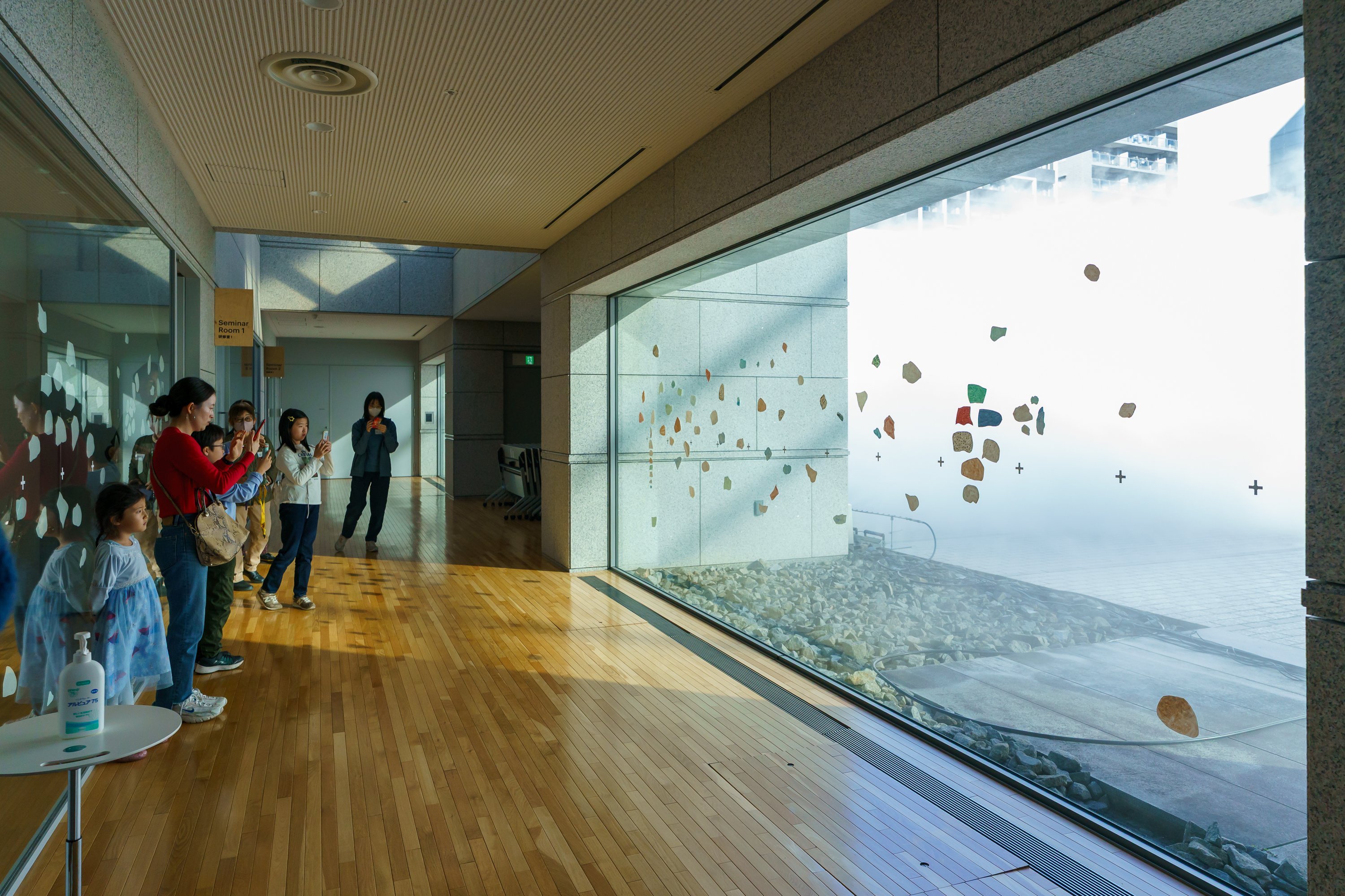 ひとしきり作品鑑賞をした後は、地下1Fにある水と石のプロムナードへ移動し、“現美の色集め”を行います。