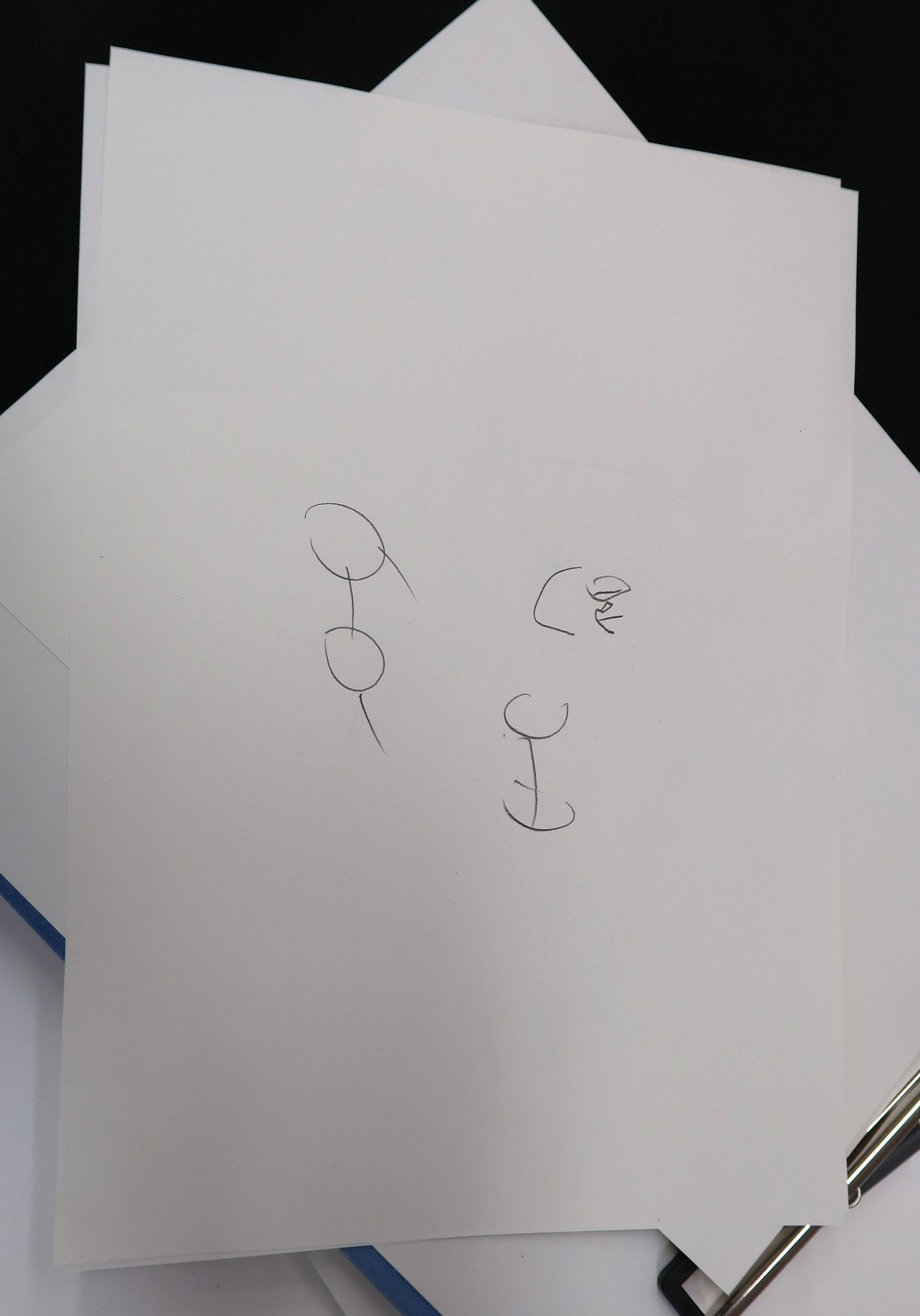「皆は作品を作る時に誰に対して作るのか考えたことがある?アーティストは何のために、誰のために作品を作っていると思う?」という青山さんの問いかけに「生活費を稼ぐため」「エールを贈るため」「親のため」「友達のため」とそれぞれ考えて答えていきます。そして、今日は自分のためではなくて、くじ引きでペアになった相手のために作品を作ることが伝えられました。「まずはバッジを贈る相手をよく観察してごらん」と青山さん。隣同士で座るペアの子たちは少し照れながらも互いにじっと顔を見合っています。