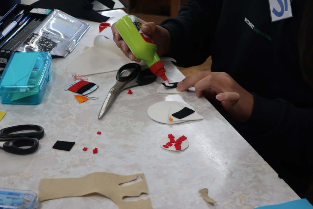 いよいよ、バッジづくりへ。互いの好きなものについて会話をしながら、制作に取り組んでいきます。「バッジはどのくらいの大きさがいい?」とペアの子の好みを聞いて作業を進める微笑ましい場面もありました。