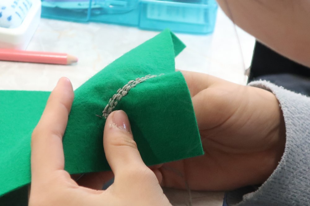 「少しでもいいから縫うことにトライしてほしい」という青山さんの言葉を受けてか、刺繍を頑張っている子もいました。