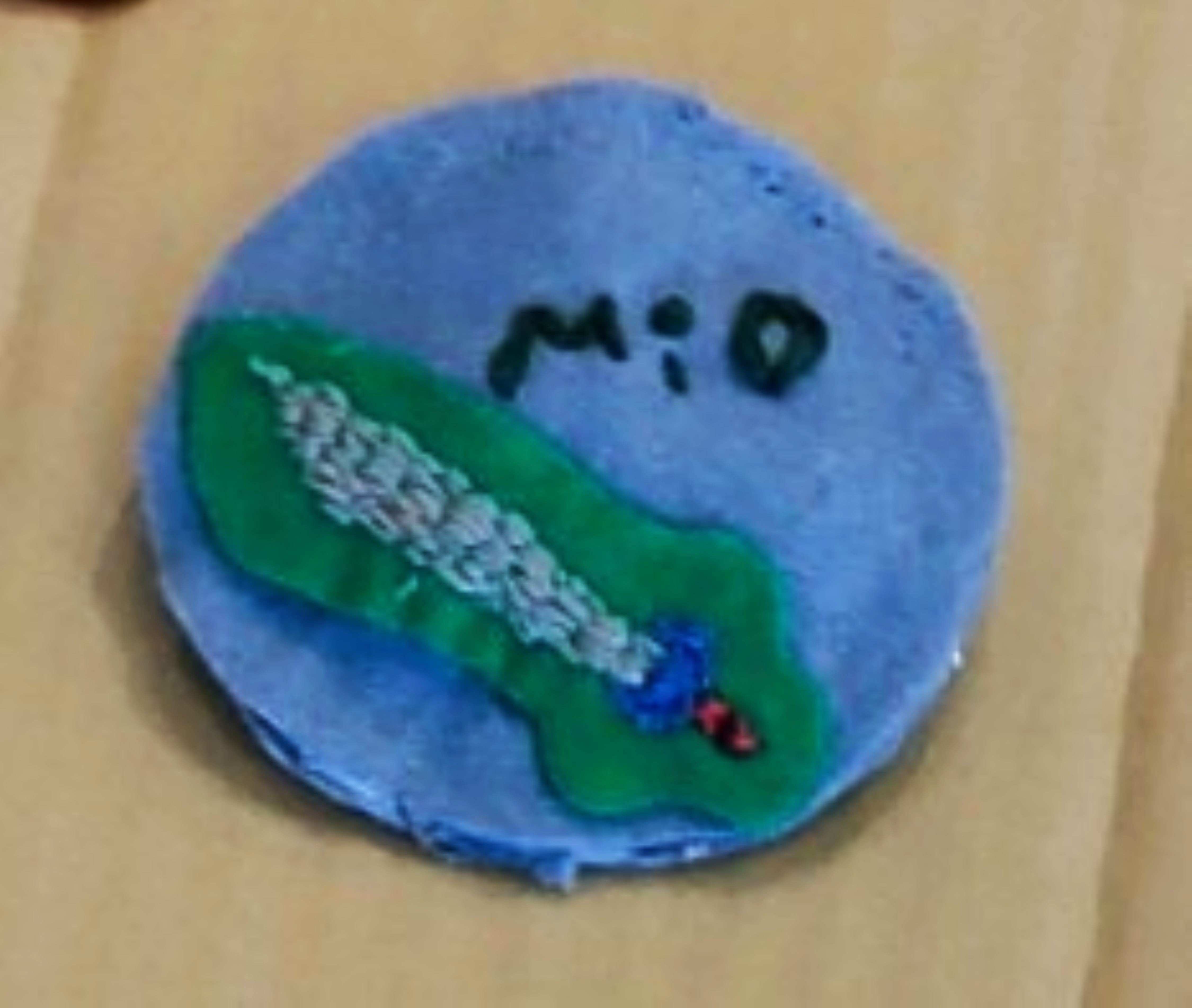 • 剣が好きな子のために剣とその子の名前が刺繍されたバッジ