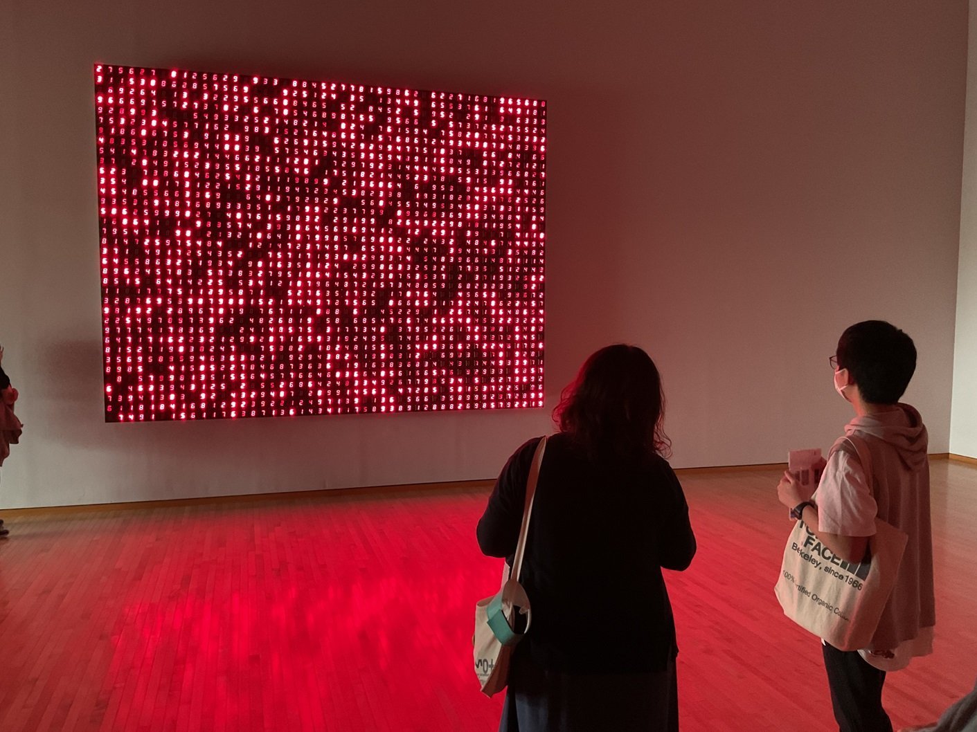 現地組も、最後は宮島達男さんによるデジタルカウンターの作品を鑑賞。一つひとつの数字の濃さが違っていたり、異なる速度で動いている様子をじっくり観察。最後は作品の前で記念写真を撮って終了です!