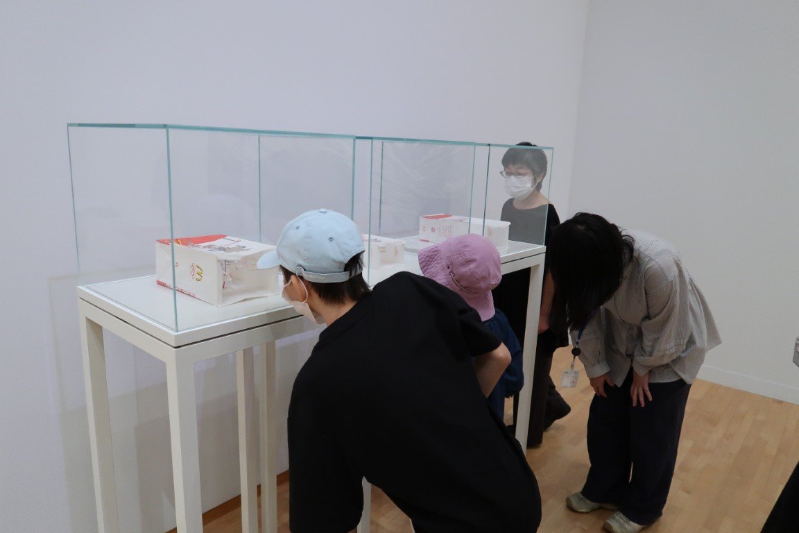 人が多い場所では感染症の心配もありますが、天井が高くパーソナルスペースも確保しやすい広々とした当館の展示室は、安心して過ごせる理由の一つになるようです。それぞれのペースで展示室お散歩するようにめぐりながら、先生や保護者の方も交えてみんなで美術館を楽しみました。 (A.T)