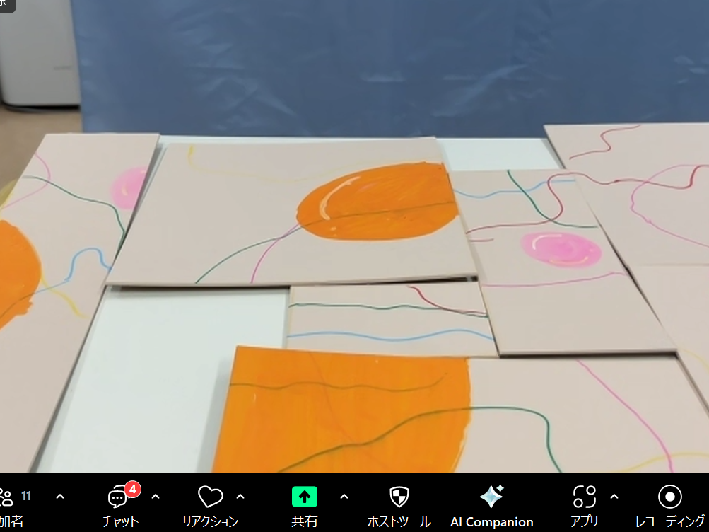 今回のようなオンラインを介した取り組みでは、電波の状況に左右されることも多く、また、直接参加者の反応をうかがえない点で、一方通行なコミュニケーションになっていないかなと省みることもあります。しかし、現地から遠く離れた場所にいる人と美術をつなぐことができるという点で、非常に重要な取り組みであると感じています。今後も、事前にできる準備や検証を重ね、美術に親しんでいただける機会や場の創造に、力を入れていきたいです。(R.T)