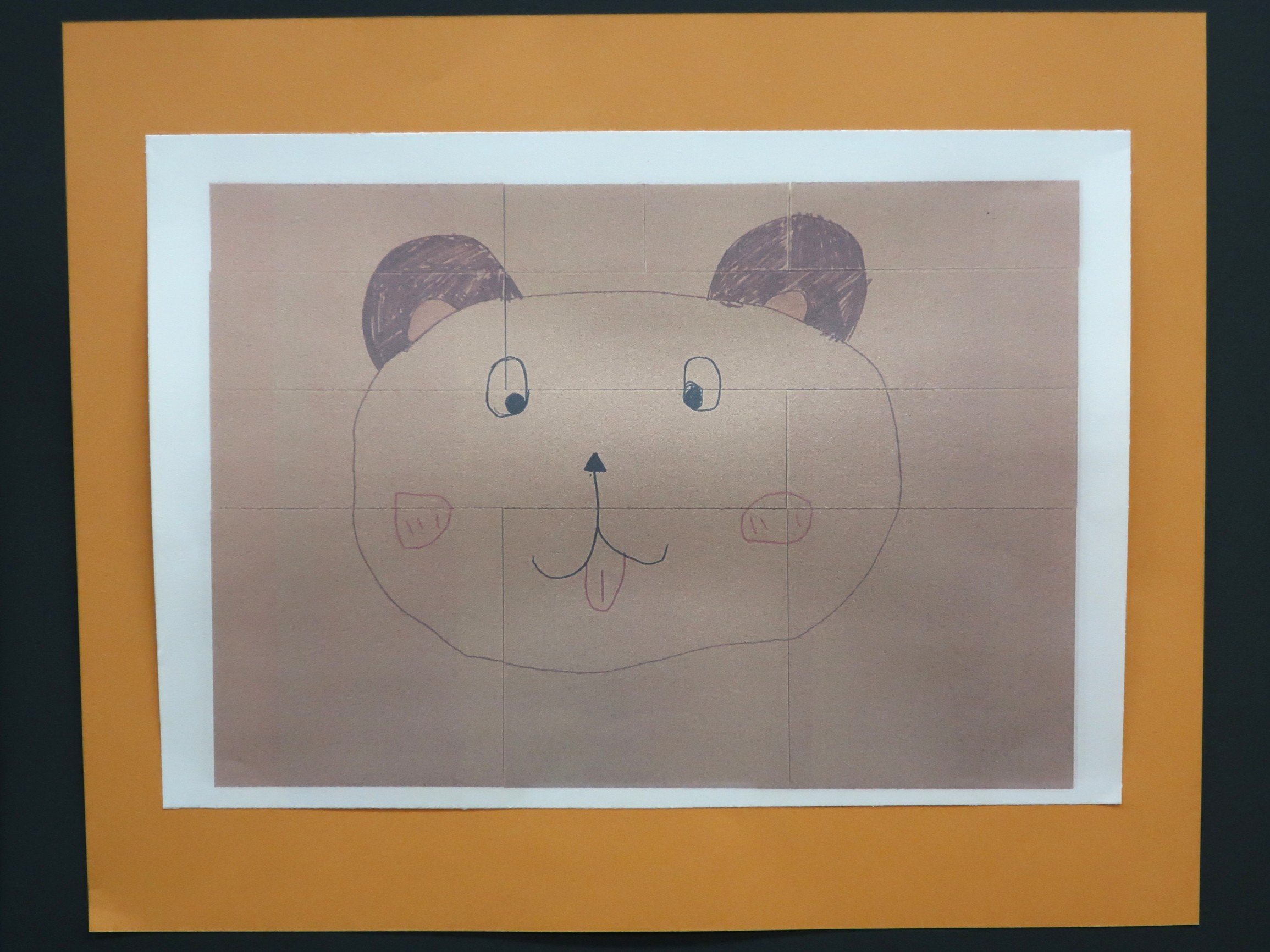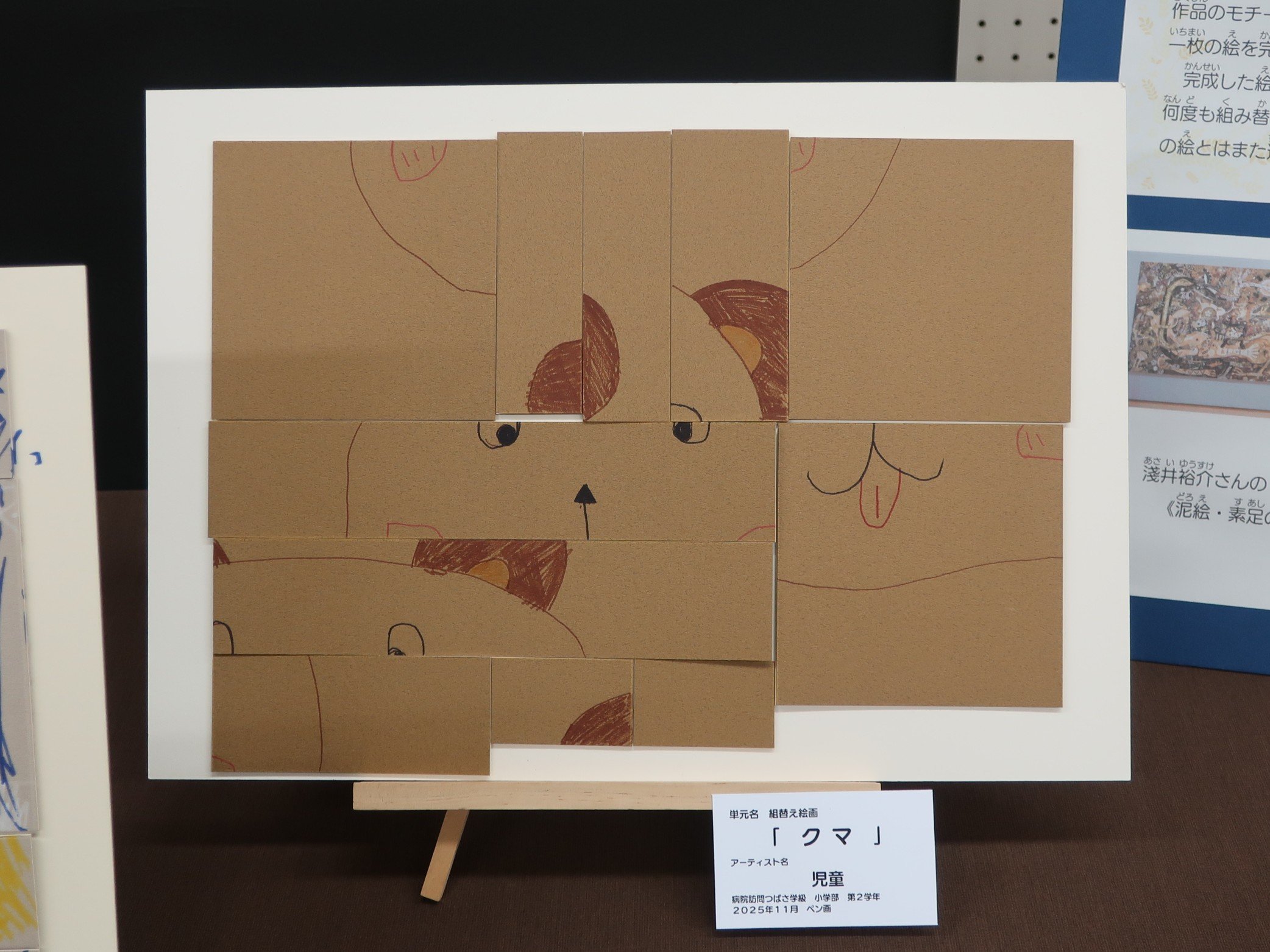 こちらは、ぱっちり開いた目が特徴的な《クマ》という作品。位置を組み替えたあとも、大きな目や、ぺろりと伸びる舌から、どこか可愛らしい印象を受けました。