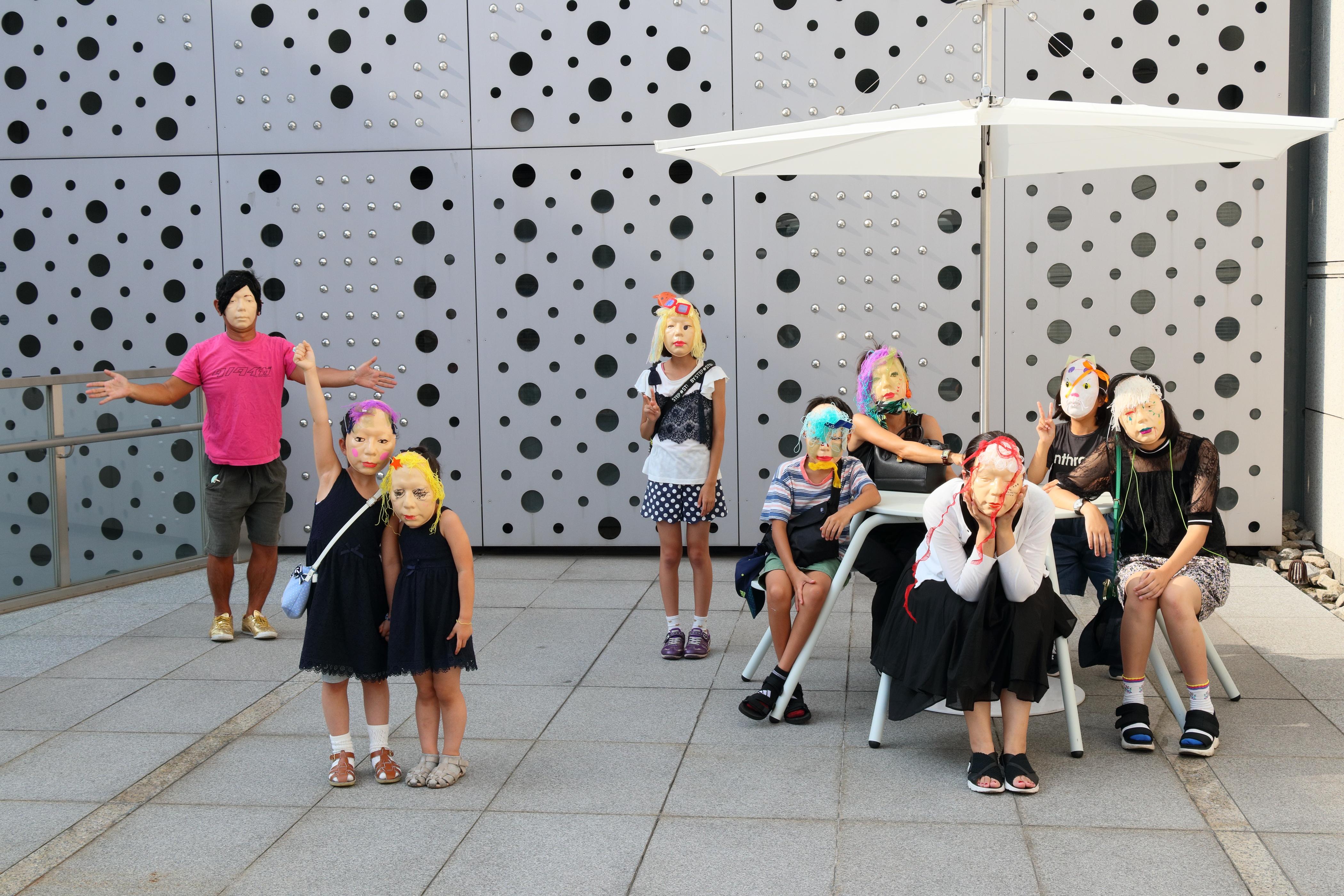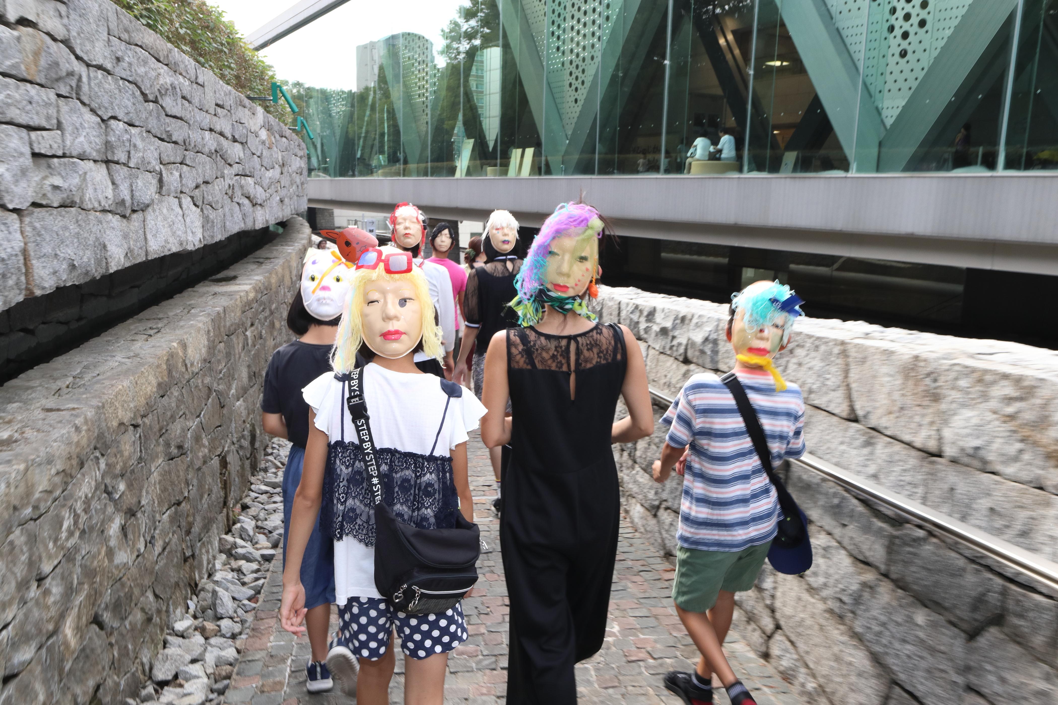 撮影された写真が公開されるという構造の中で、多様な「匿名」のお面によって肖像権の侵害という社会的な恐怖をユーモラスにかわしていく…その様子を体現するようなイベントとなりました。