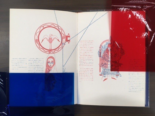 宇野亞喜良と挿絵を担当した絵本。2色のセロファンを通して2通りの文章とイラストを見ることができます。