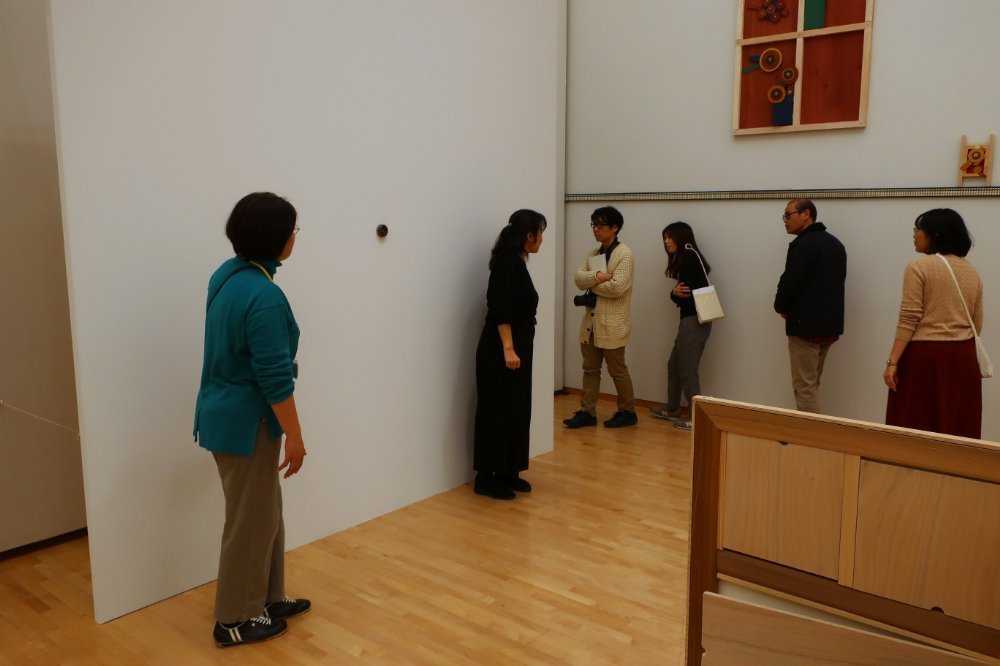豊嶋展では550点ほどの作品が出品されていますが、鑑賞会では主に12種類の作品を巡りました。ここから、その様子の一部をご紹介いたします。