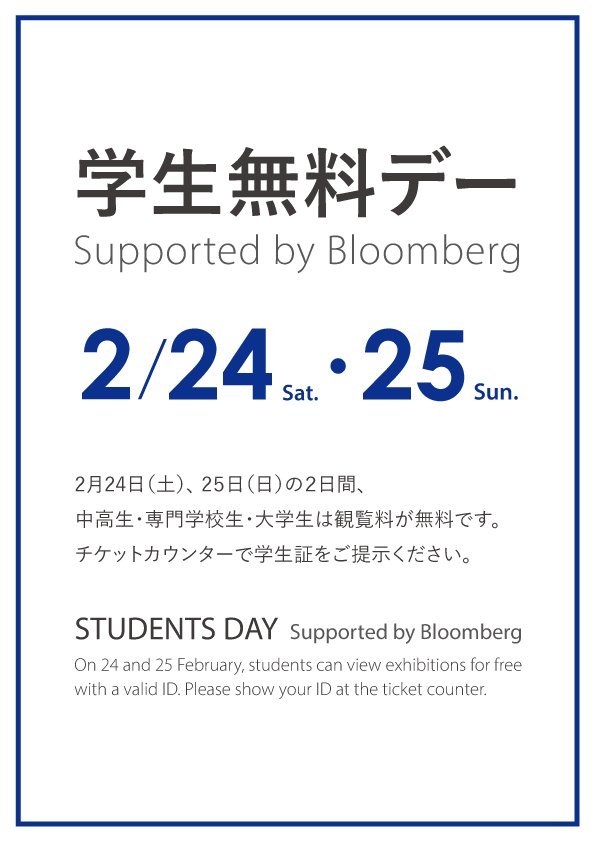2/24・25は学生無料デー Supported by Bloomberg