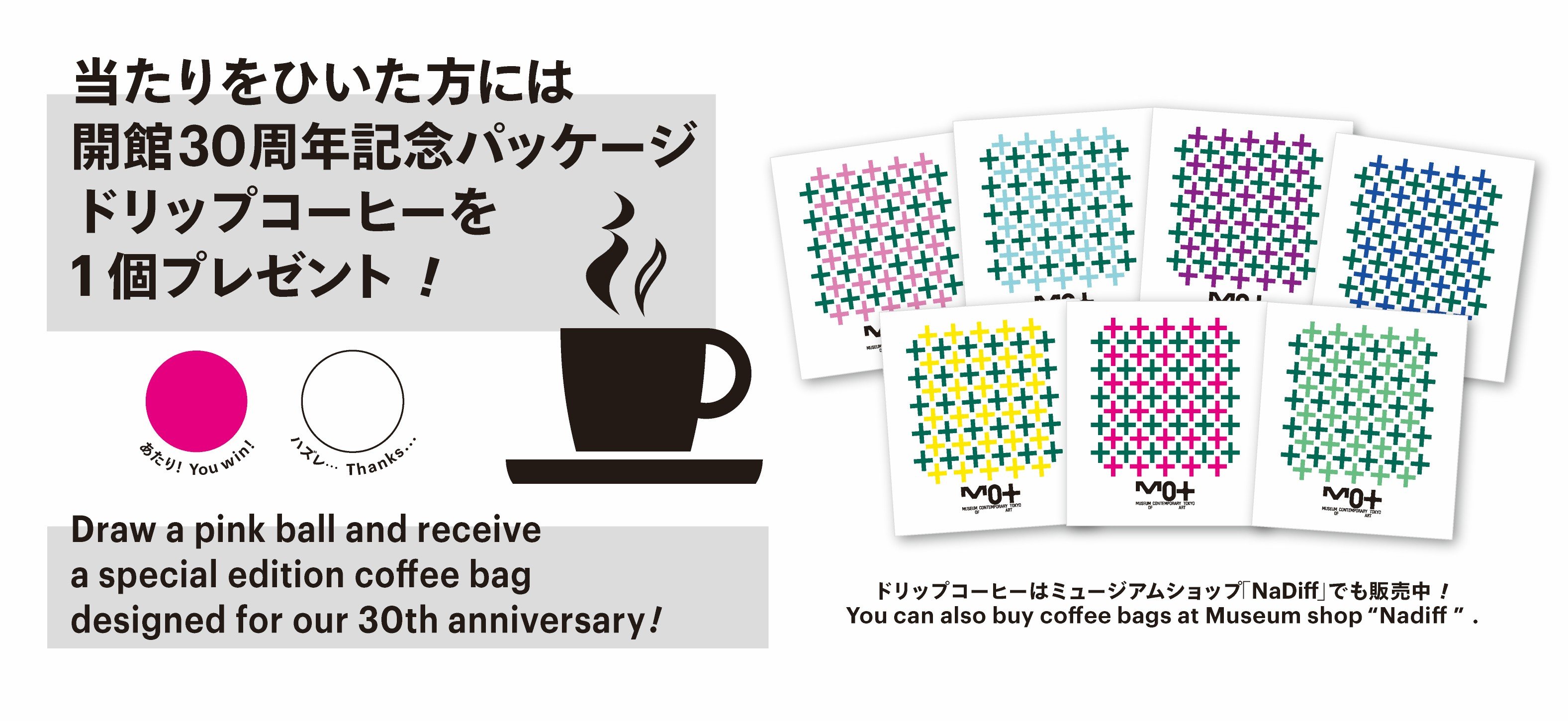 期間中、抽選で毎日30名様に、開館30周年記念デザインのドリップコーヒーを1包プレゼントします。ご来館の際は、ぜひご参加ください。